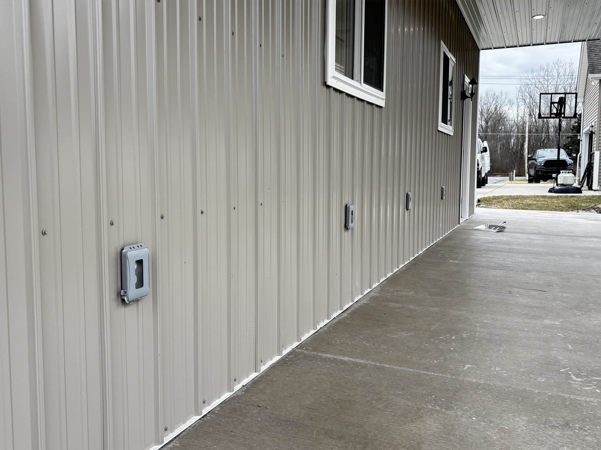 Our Work The DC Difference See for yourself, the care, effort, and precision, DC Electric of WNY puts into every project. Installing circuits for power and lighting Footing ladder while hanging outside light Interior pole barn LED lighting completed Completed pole barn exterior LED lighting Completed outlets Completed pole barn exterior LED lighting